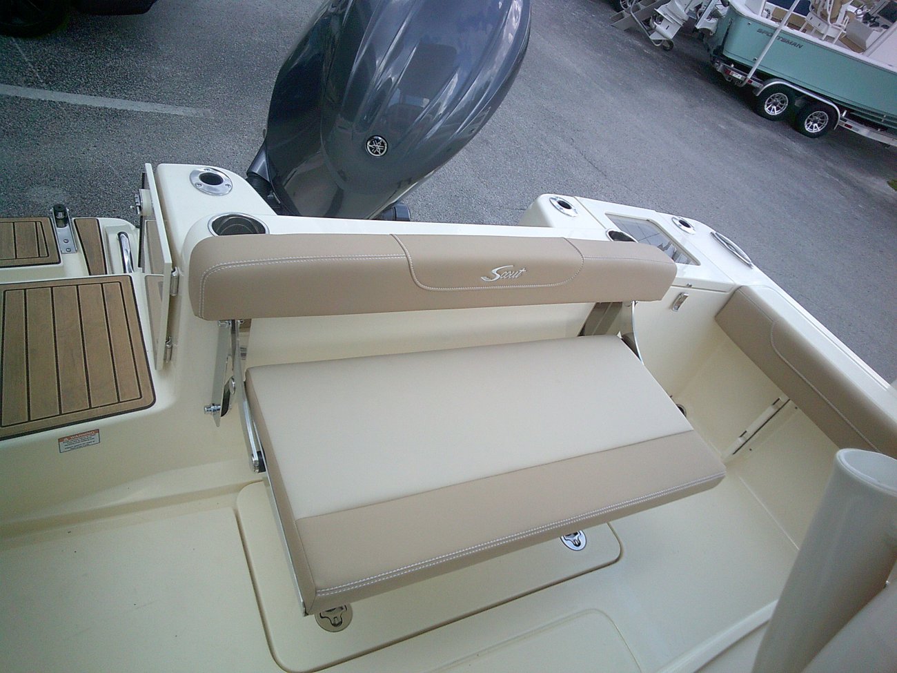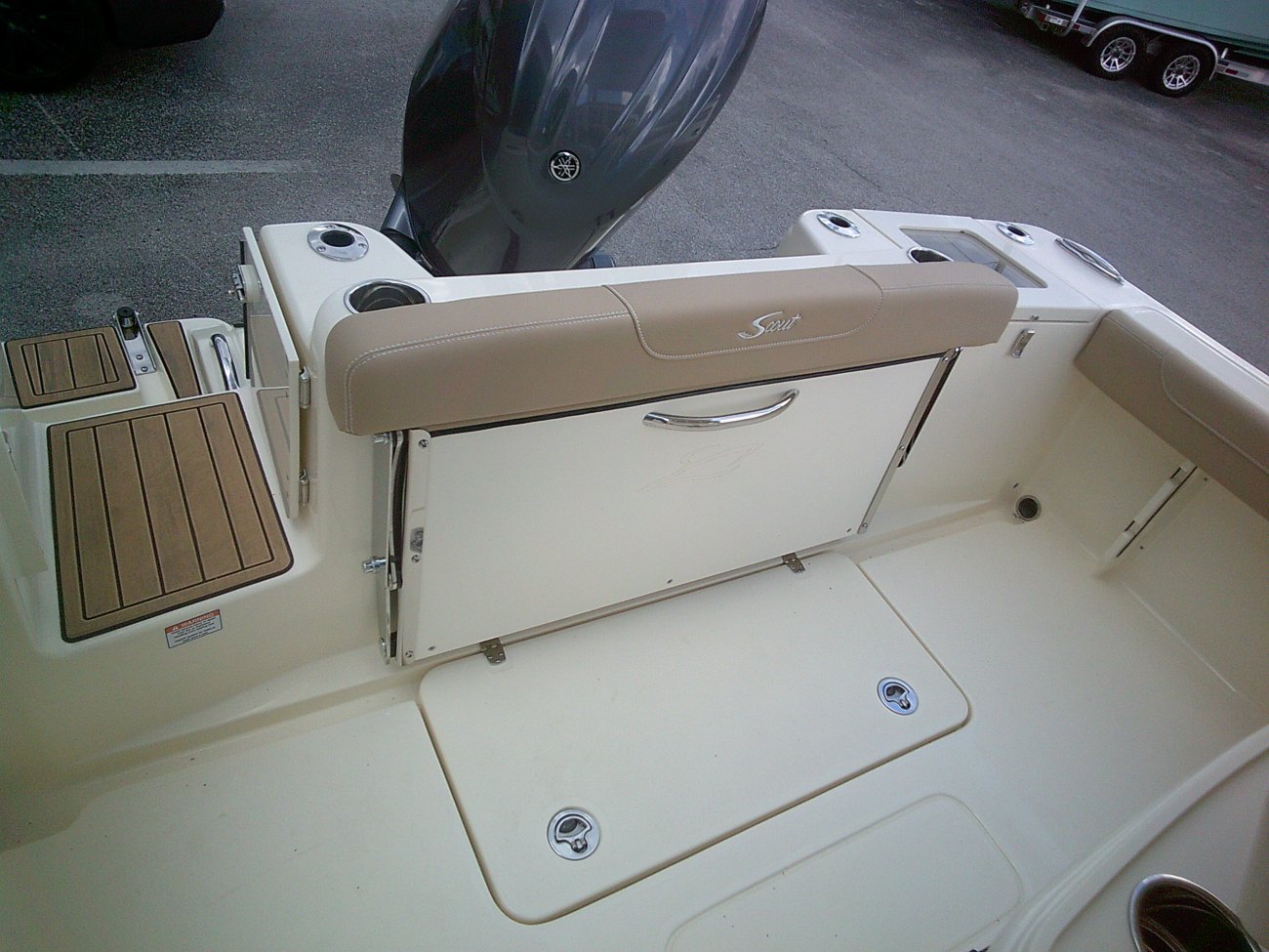 2026 Scout 215XSF with a Yamaha 150 and trailer. Color Crystal Blue
